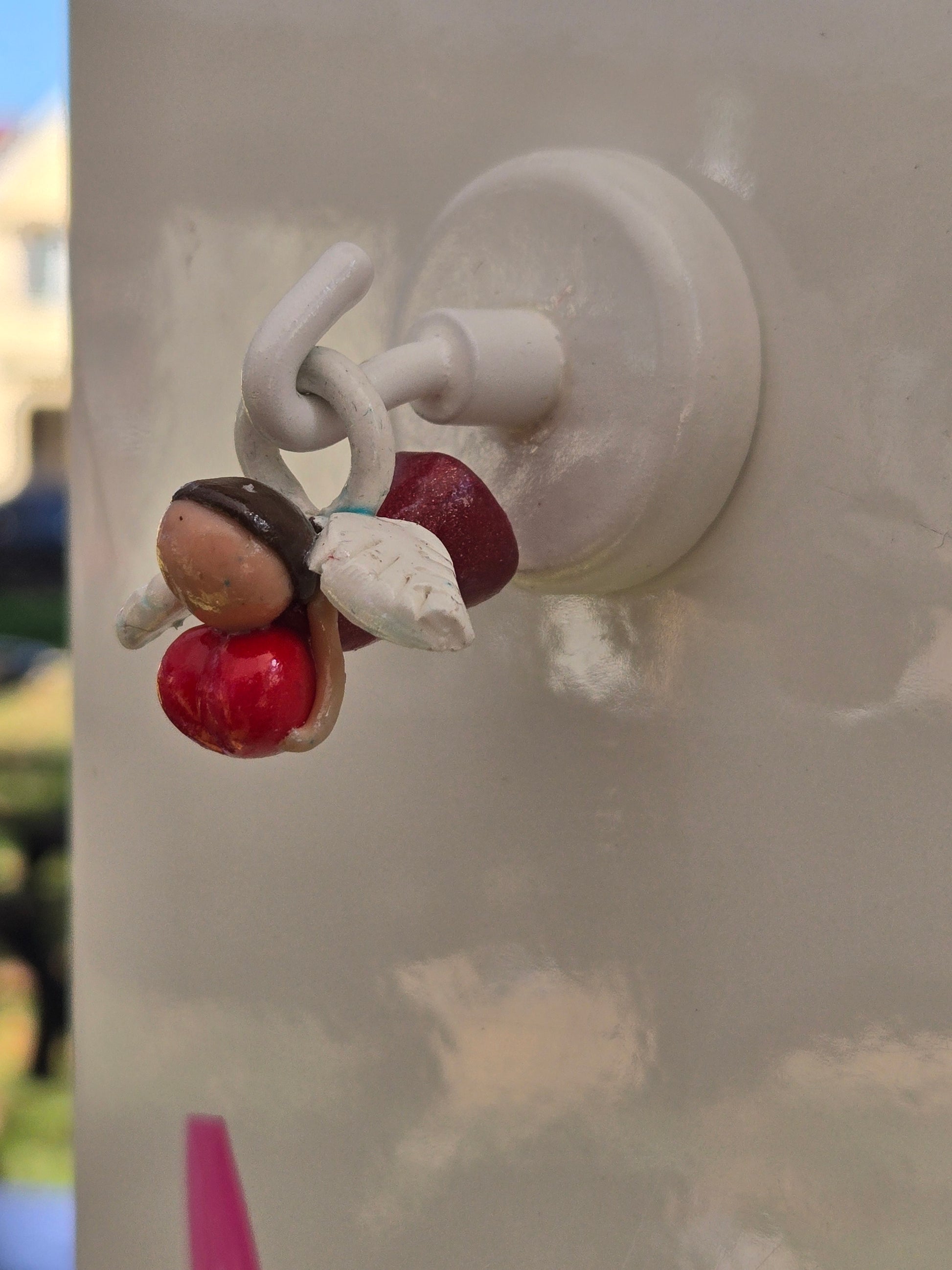 Made of polymer clay, hand built and glazed
